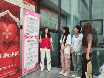 活动期间,三所高校校园内设立的宣传咨询台成为“人气打卡点”。红十字志愿者通过展板展示、资料发放、现场讲解等方式,向广大师生普及无偿献血及造血干细胞捐献的科学知识、流程规范及优待政策,消除学生疑虑。现场设置的免费血压测量与血型检测服务,吸引了众多学生驻足参与,在了解自身健康状况的同时,可以近距离学习掌握血液健康知识。